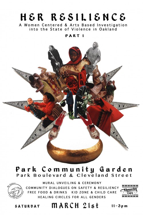 The Her Resilience collective of female artivists will unveil their new community mural for women affected by violence in Oakland with ceremony, community dialogues on safety and resiliency, healing circles for all genders, a kid zone and child care. Coffee, drinks, and donuts sponsored by Mamacitas Cafe. Contact: herresilience@gmail.com. 11am-3pm. Park Community Garden, Corner of Park and Cleveland, Oakland.