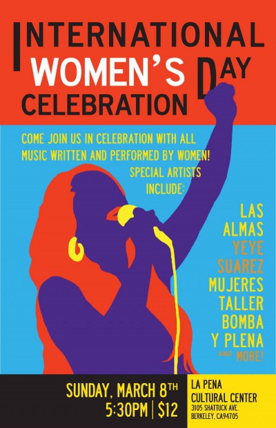 La Pena Cultural Center presents an International Women’s Day Concert musical collaboration with Las Alma’s, Yeye Suarez, and the Mujeres Taller Bomba y Plena. All music written and performed by women. Come live the values and knowledge of International Women’s Day in this community concert. Family event. 5:30pm, Tix $12, La Pena Cultural Center, 3105 Shattuck Ave., Berkeley.